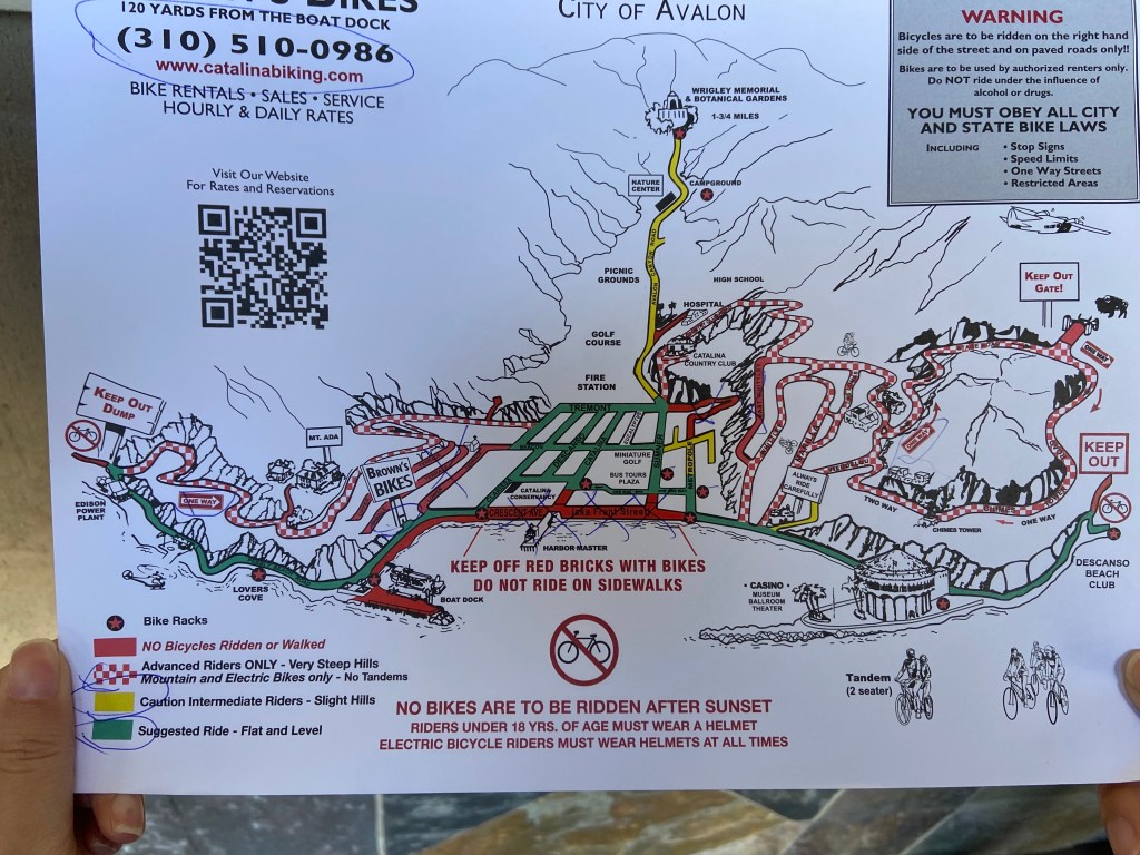 額外補充:其實Avalon附近的景點都非常近,如果有體力的話也可以步行到這些景點。除非你要騎到比較遠的地方,比如沿著峽谷一路騎到上面的Wrigley Memorial & Botanical Gardens。