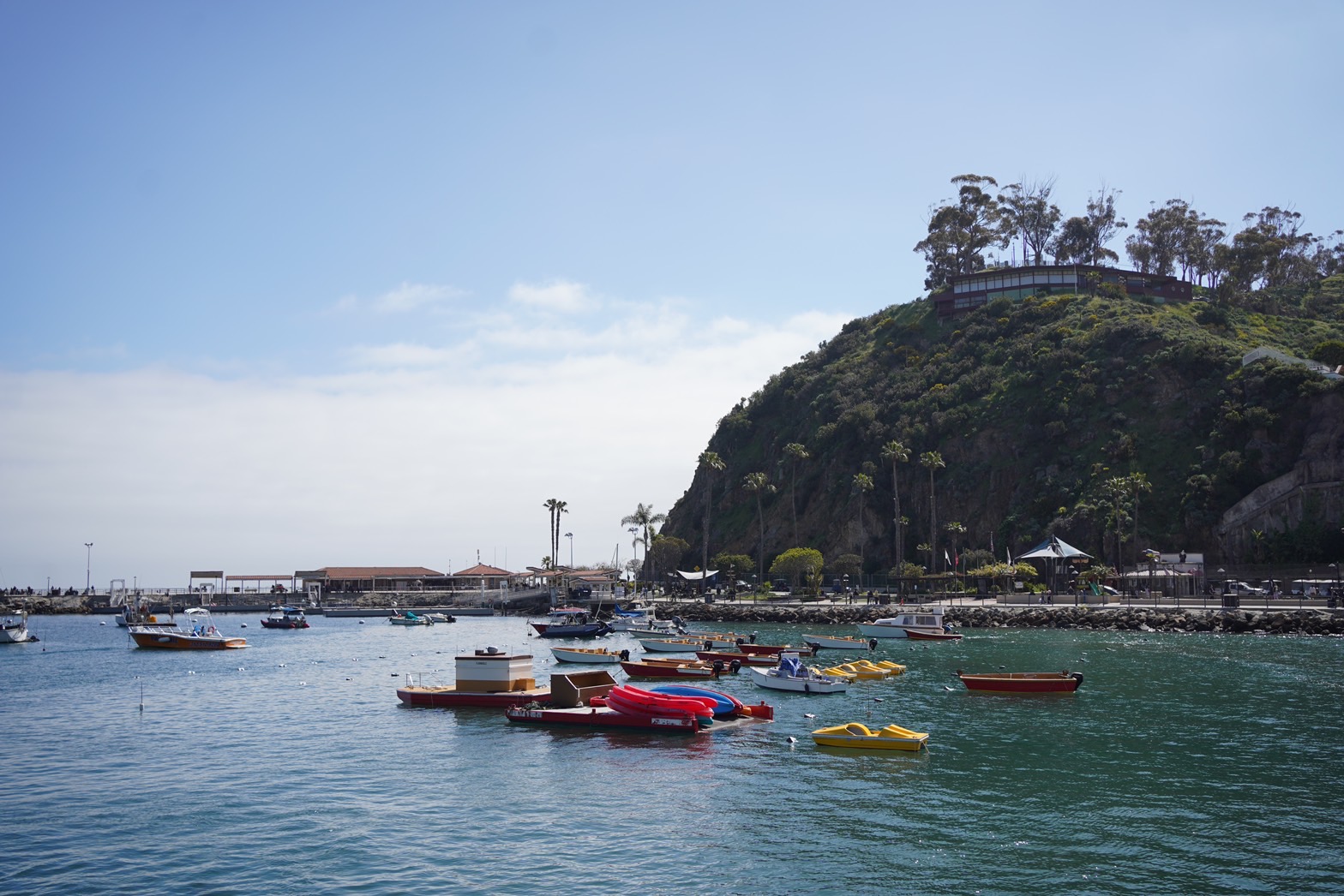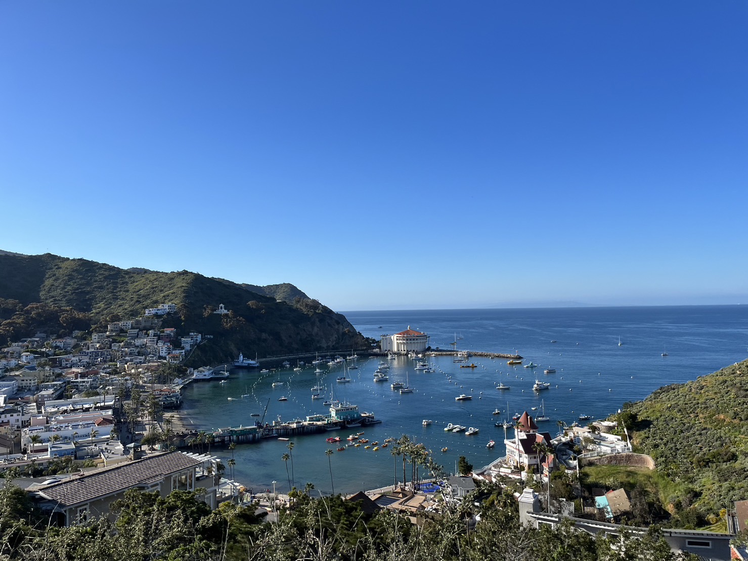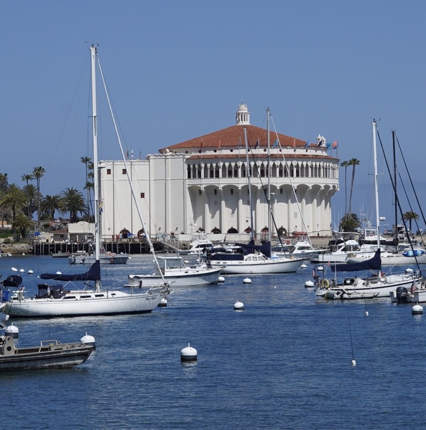 另外在下面的右圖你還可以看到這邊極具標誌性的Katalina Casino,但不要誤會了,導覽跟我們介紹到義大利語原文casino的意思,其實是小房子的意思,一般是指提供娛樂的地方,像在Santa Catalina Island的Casino就是一個電影院。所以原意其實是正面的,沒有gambling的意思,跟Las Vegas的Casino完!全!不一樣喔!此外這些在美國蓋賭場的人,為了美化其名才取名為Casino。因此可以說是美國賭場一舉帶偏了Casino的意思XD