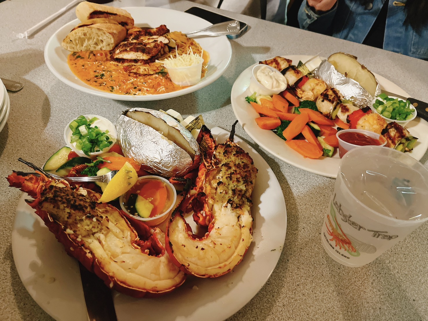 來到充滿海鮮的地方,當然還是想嚐嚐龍蝦啊!雖然是真的不便宜,但這家標題太大了,還是被吸引進去了。這邊龍蝦1.5磅是79美(未含稅及小費)。