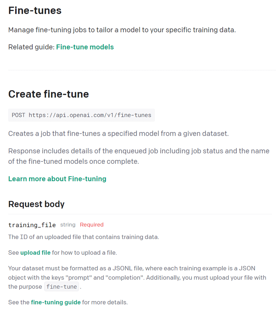 openai api fine_tunes.create -t <TRAIN_FILE_ID_OR_PATH> -m <MODEL>