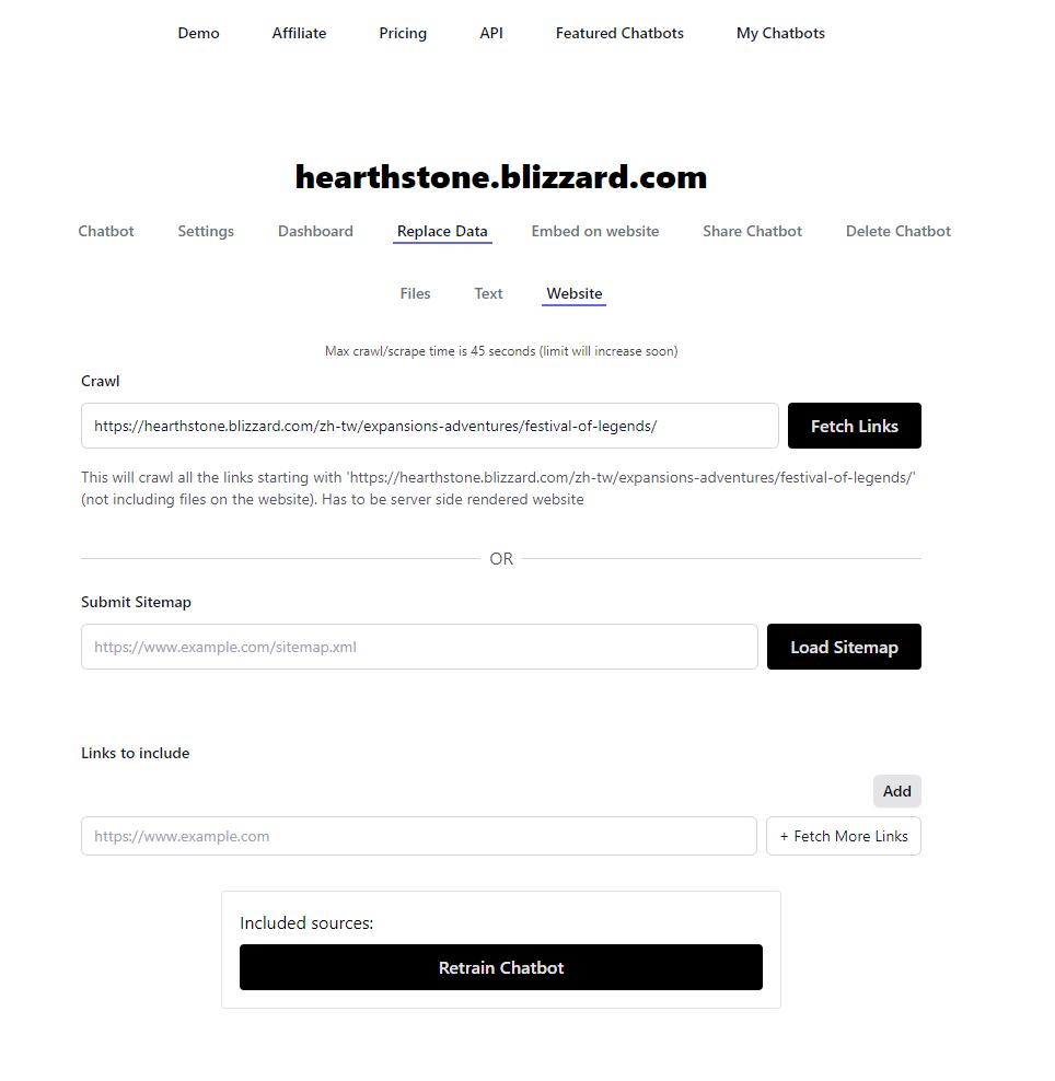 這個網站提供UI介面讓不會寫程式的人也可以簡單訓練chatGPT。只要簡單將資料上傳,或甚至輸入特定網址就可以訓練聊天機器人了,此外他提供的居然是最新的gpt3.5-turbo和gpt4,訓練效果還不錯!目前如果不做任何調整直接使用OpenAI自家的fine-tune和Chatbase的fine-tune,竟然是Chatbase略勝一籌!當然OpenAI的使用彈性和上限更高些。靜待未來的變化哈哈。