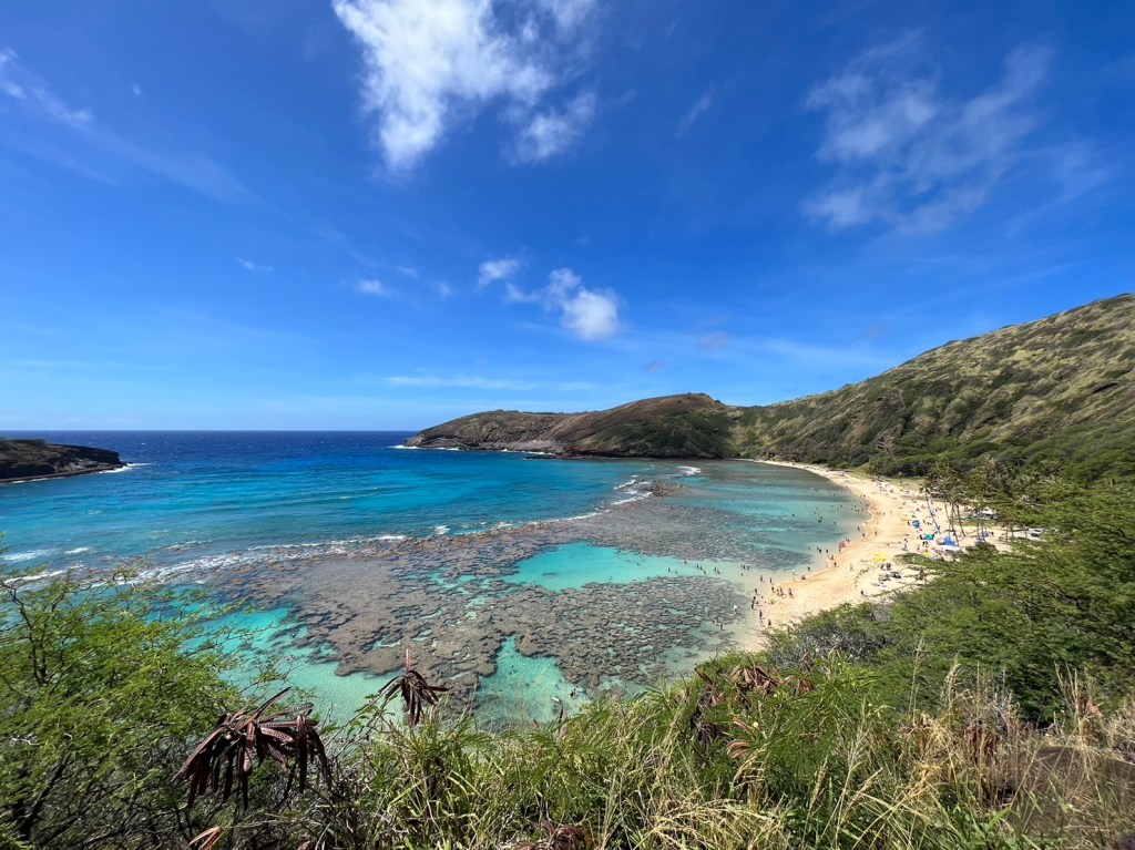 恐龍灣(Hanauma Bay)可以說是夏威夷歐胡島最有名的潛水景點,保留完整的珊瑚礁岩成為海龜與熱帶魚的避風港,其碧綠澄淨的海水以及月牙形狀的沙灘多次獲選為美國最美麗的海灣。