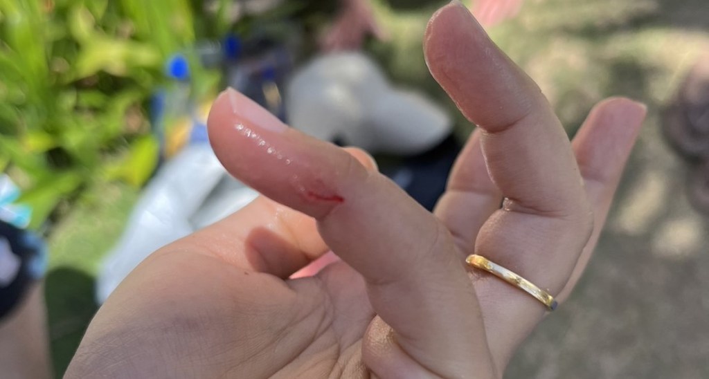 沒錯,可能就是我游太慢了,魚都把我當成魚了,anyway我就被一隻魚狠狠咬了一口,沒錯我還看到她狠狠把嘴巴張開!!被咬的瞬間超有感,超痛!!