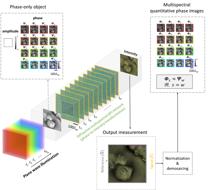 首先,定量相位成像(QPI)是一種不需人工標記的成像技術,用於觀察透明樣本中光的變化。通過這種技術,我們可以評估物體的折射指數和厚度。傳統的QPI系統需要一些複雜和昂貴的元件和硬體來捕捉不同波長的光。這不僅增加了成本,而且還減慢了成像速度。