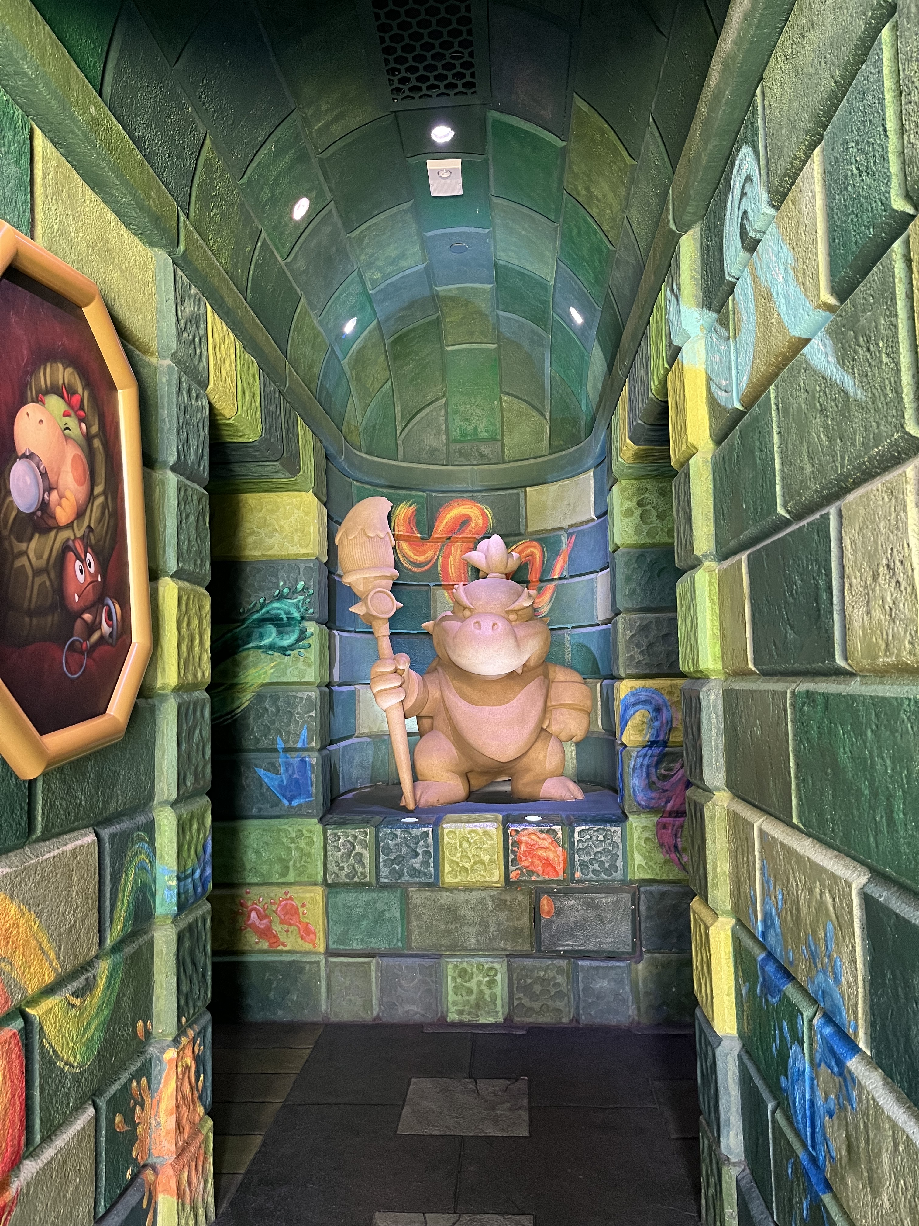 右下圖是會有液晶顯示螢幕播放著超級瑪利歐各種角色的走廊,站在這裡就能聽到歡樂的音樂聲和遊戲特效!!