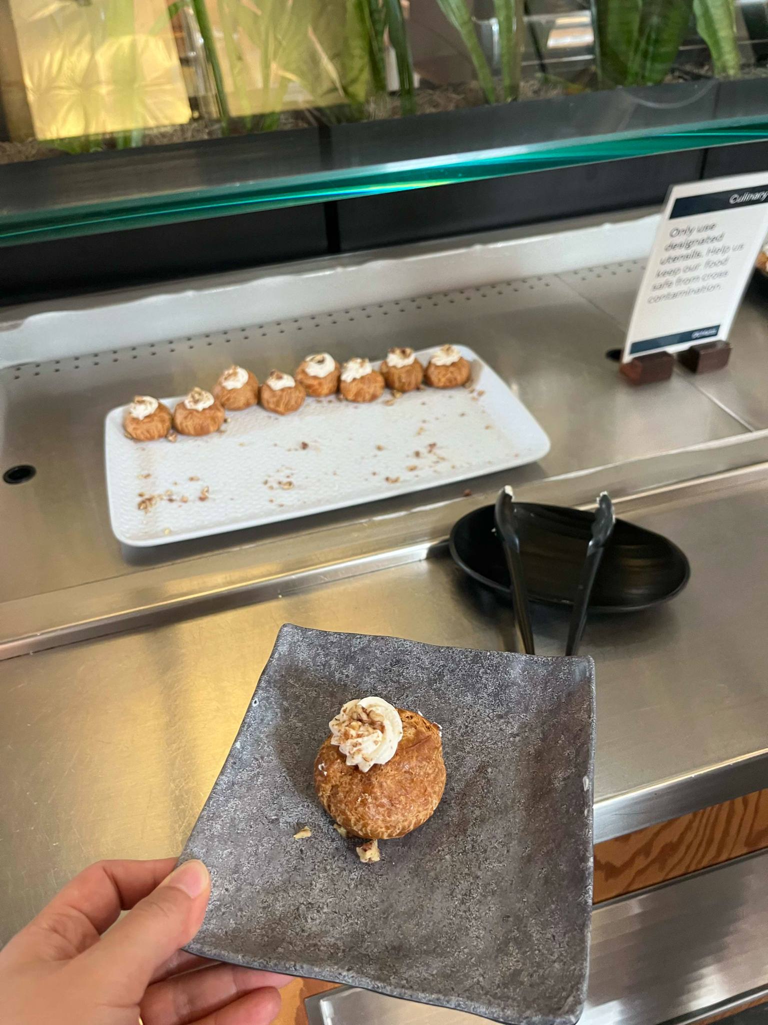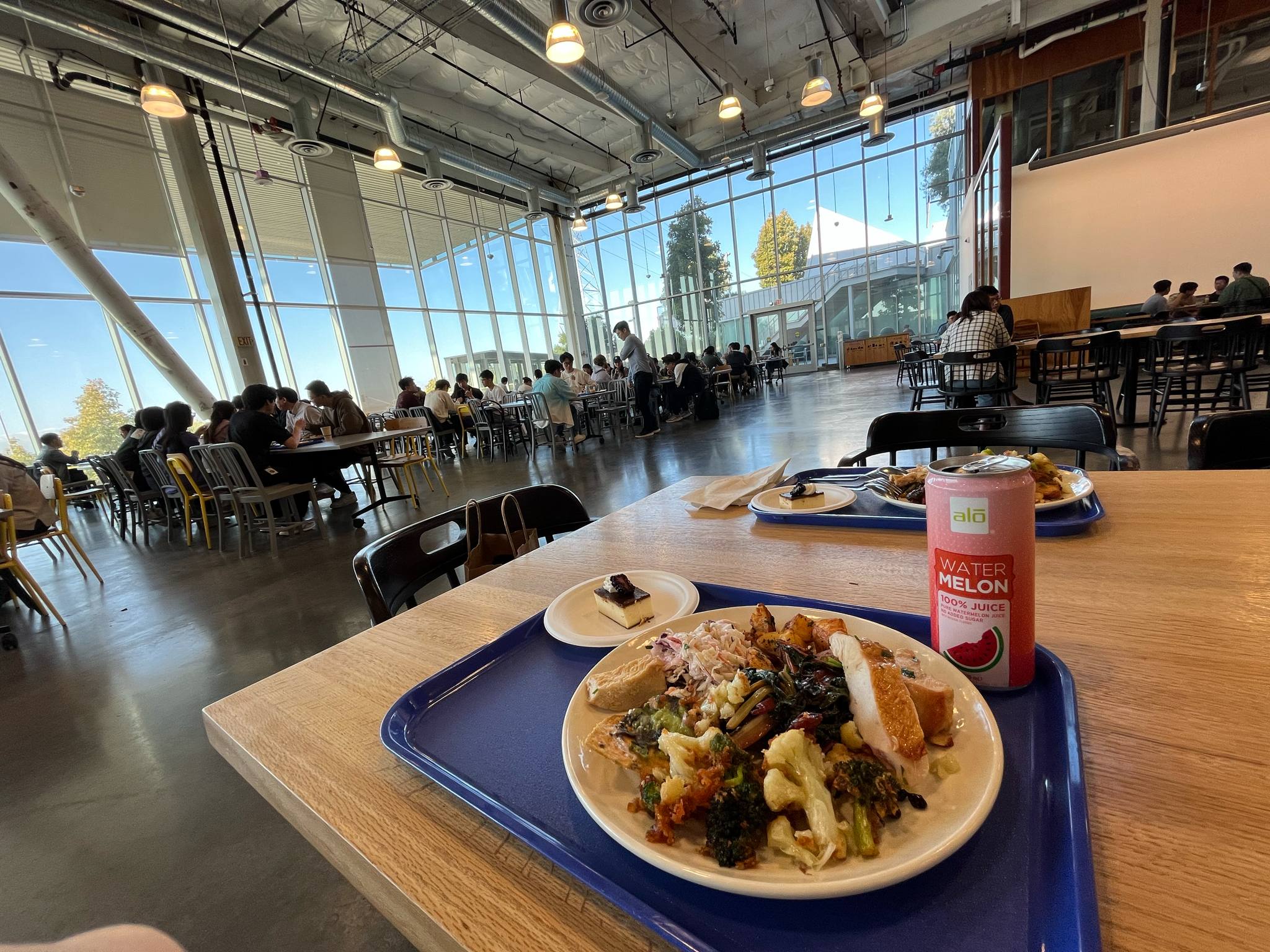 - Meta office 設有對員工開放的免費自助餐廳,提供早、中、晚三餐。實習生的 badge 也可以跨辦公室使用,可至不同分部享用餐點,比如最多餐廳的Meta headquarter。(P.S. Meta的主打一個吃到飽,免錢!)(菜單一直變化,有時候會特別好吃,甜點穩定好吃!)